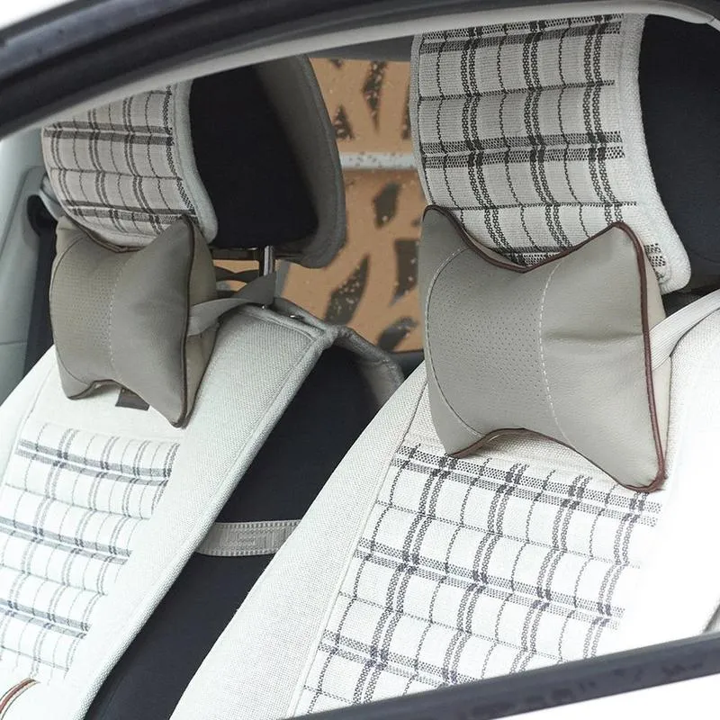 2 pcs Car Seat Pillow Neck Support Travel Pillow Breathable Car Head Neck Rest Cushion Headrest Auto Car Safety Pillow brown