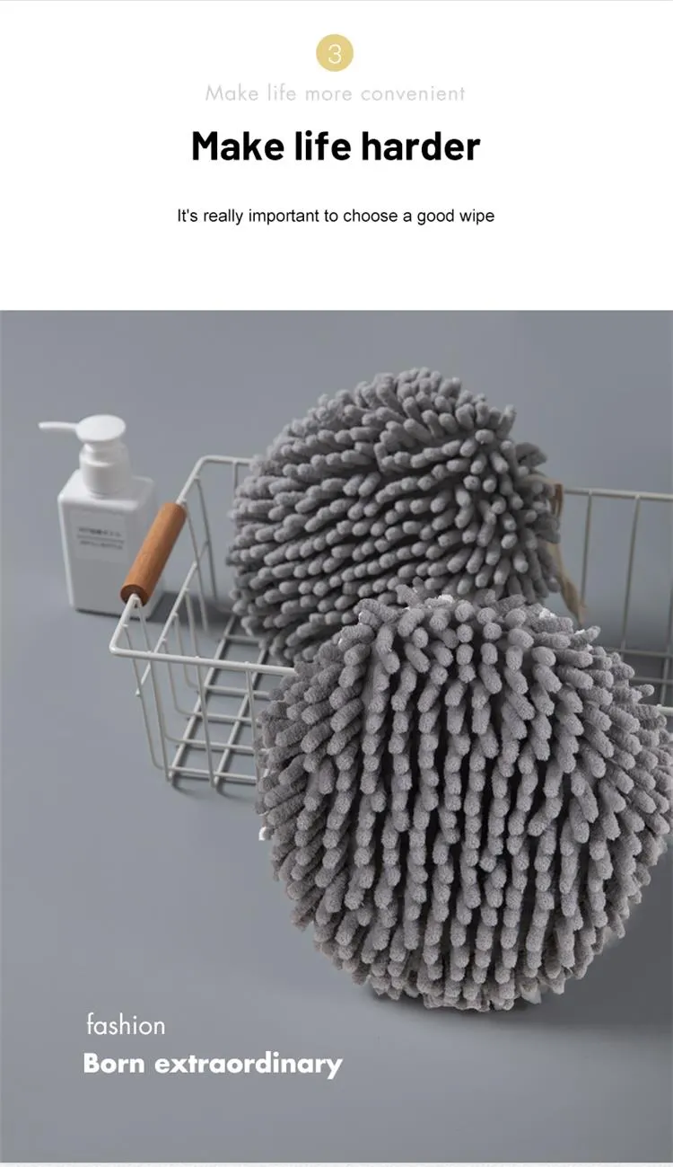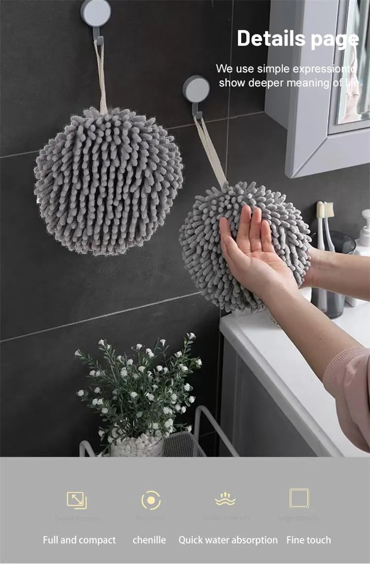 Product details of Hanging Chenille Hand Wipes Kitchen Bathroom Hand Towel Ball with Hanging Loops Quick Dry Soft Absorbent Microfiber Towels