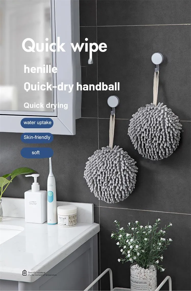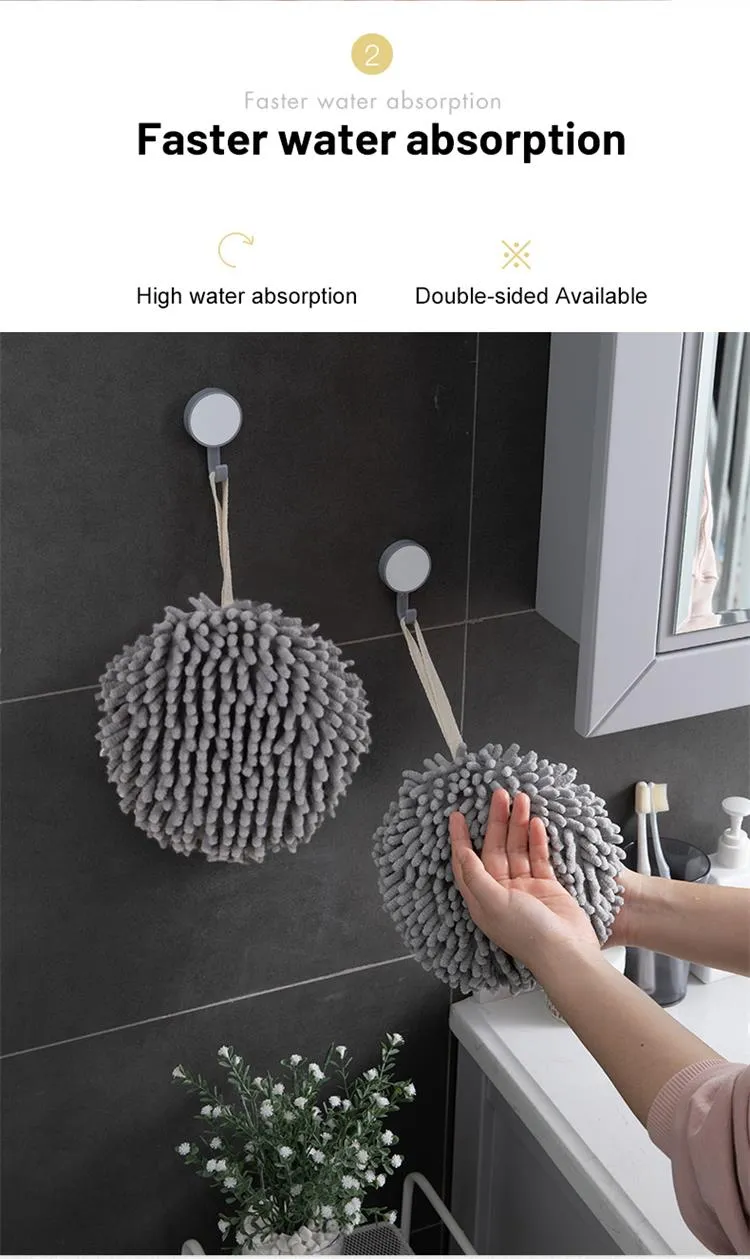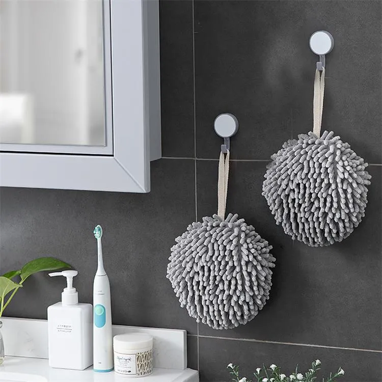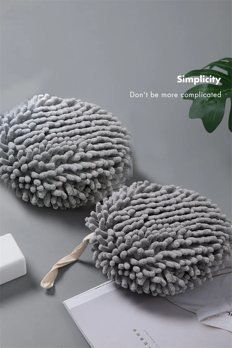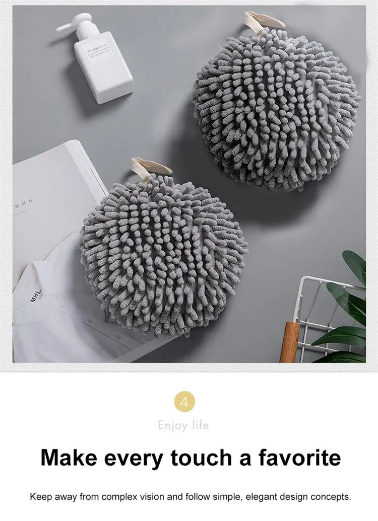 - Hanging Chenille Hand Wipes Kitchen Bathroom Hand Towel Ball with Hanging Loops Quick Dry Soft Absorbent Microfiber Towels