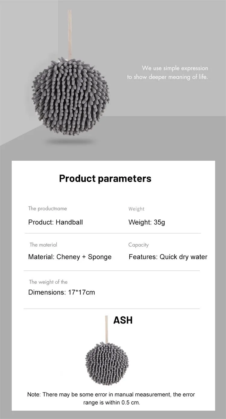 Specifications of Hanging Chenille Hand Wipes Kitchen Bathroom Hand Towel Ball with Hanging Loops Quick Dry Soft Absorbent Microfiber Towels